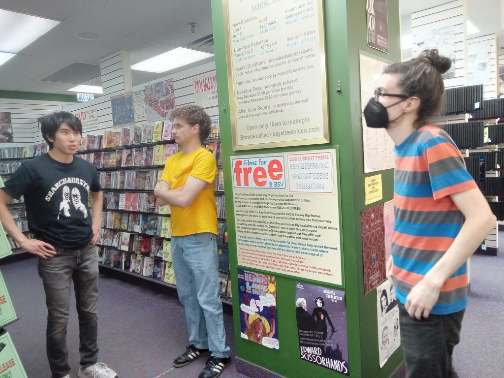 I was asking Mark (Hanson, photo below left) if he believes something is changing. He agreed, and we were standing on external proof at his workplace in Bay Street Video, where both mainstream and outsider cinema physical media co-exist.